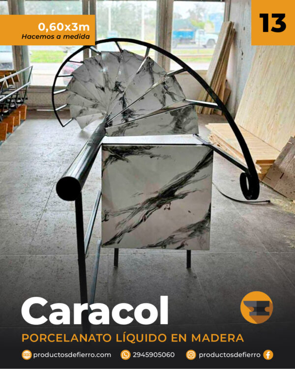 Escalera caracol de porcelanato líquido sobre madera de (hasta) 3 mtrs por 0.60 de ancho.
