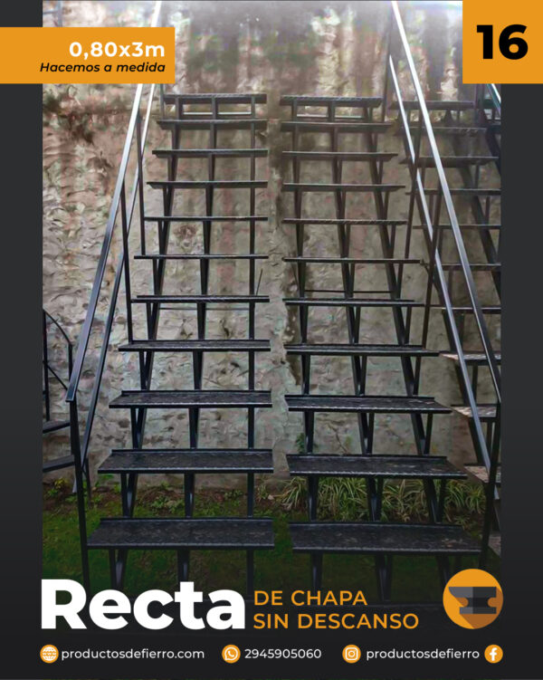 Escalera hierro y chapa sin descanso de (hasta) 3 mtrs de alto x 0.80 mtrs de ancho de hierro y chapa Estructurales: 70/30 Valoraciones No hay valoraciones aún. Sé el primero en valorar “”Cancelar respuestaTu dirección de correo electrónico no será publicada. Los campos obligatorios están marcados con *Tu puntuación * Puntuar… Perfecto Bueno Normal No está tan mal Muy pobre Nombre *Correo electrónico *Tu valoración *Enviar