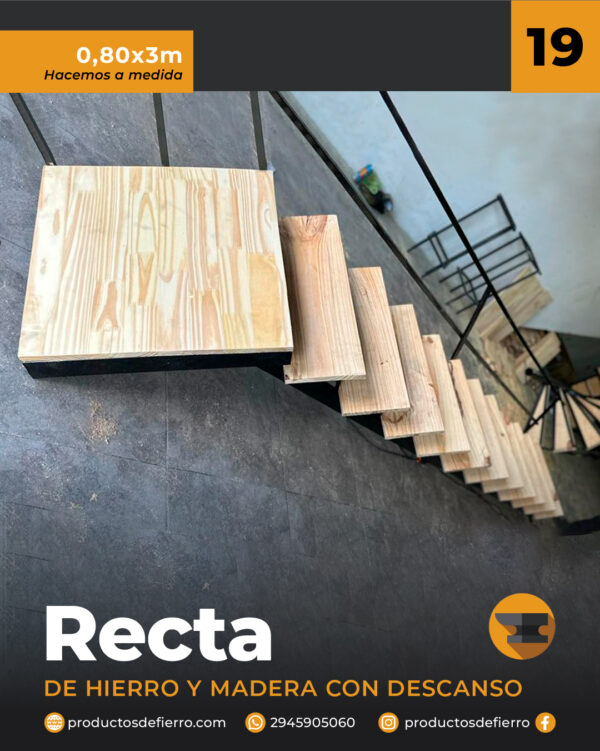 Escalera de hierro y madera CON DESCANSO (hasta) 3 mtrs de alto x 0.80 mtrs de ancho de hierro y madera Estructurales: 70/30 Valoraciones No hay valoraciones aún. Sé el primero en valorar “”Cancelar respuestaTu dirección de correo electrónico no será publicada. Los campos obligatorios están marcados con *Tu puntuación * Puntuar… Perfecto Bueno Normal No está tan mal Muy pobre Nombre *Correo electrónico *Tu valoración *Enviar