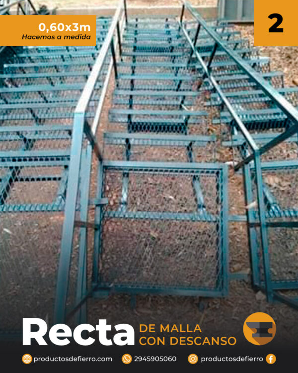 Escalera de hierro y malla CON DESCANSO (hasta) 3 mtrs de alto x 0.60 mtrs de ancho de hierro y malla(material desplegado) Medidas de la Malla: 620 30 x 30
