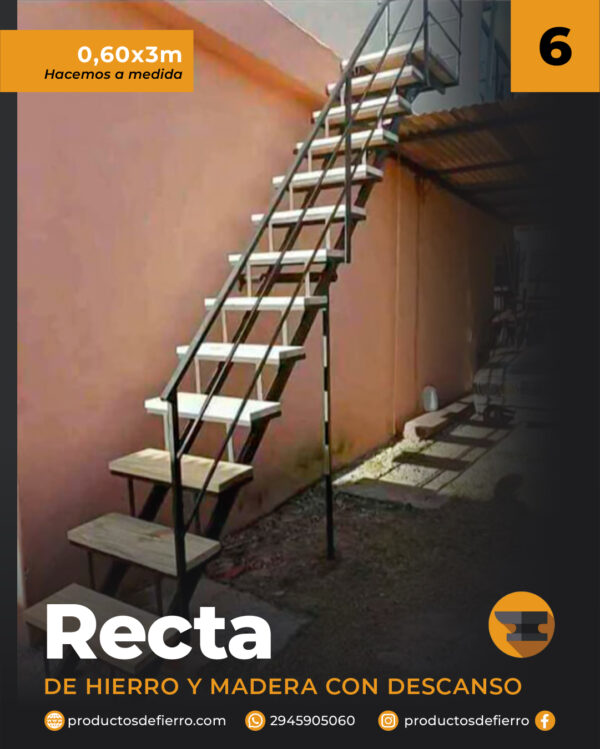 Escalera de hierro y madera CON DESCANSO (hasta) 3 mtrs de alto x 0.60 mtrs de ancho de hierro y madera